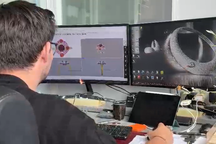 Ensuite, je modélise le bijou en 3D, ce qui offre un niveau de précision millimétrique indispensable pour assurer l’équilibre, le confort et la durabilité du modèle.